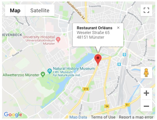 benannt nach der französischen Partnerstadt Münsters, bietet das Restaurant Orléans traditionelle Küche und ausgesuchte Weine aus Deutschland und Frankreich in einem gemütlichen und stilvollen Ambiente.